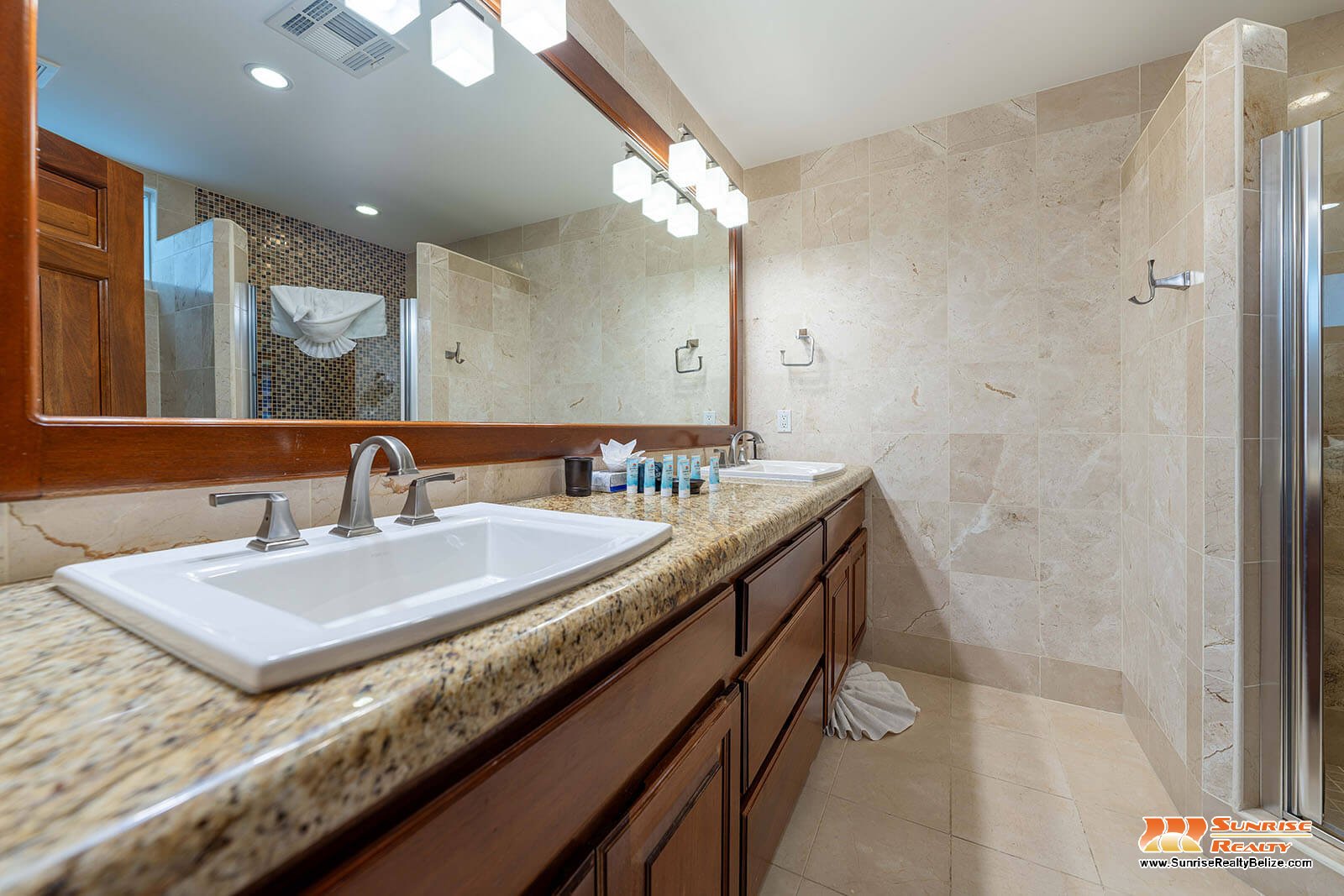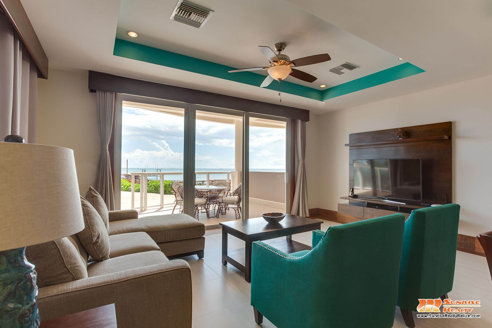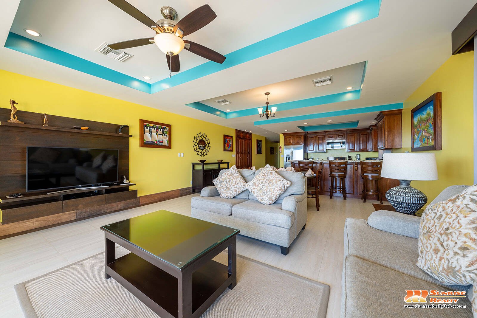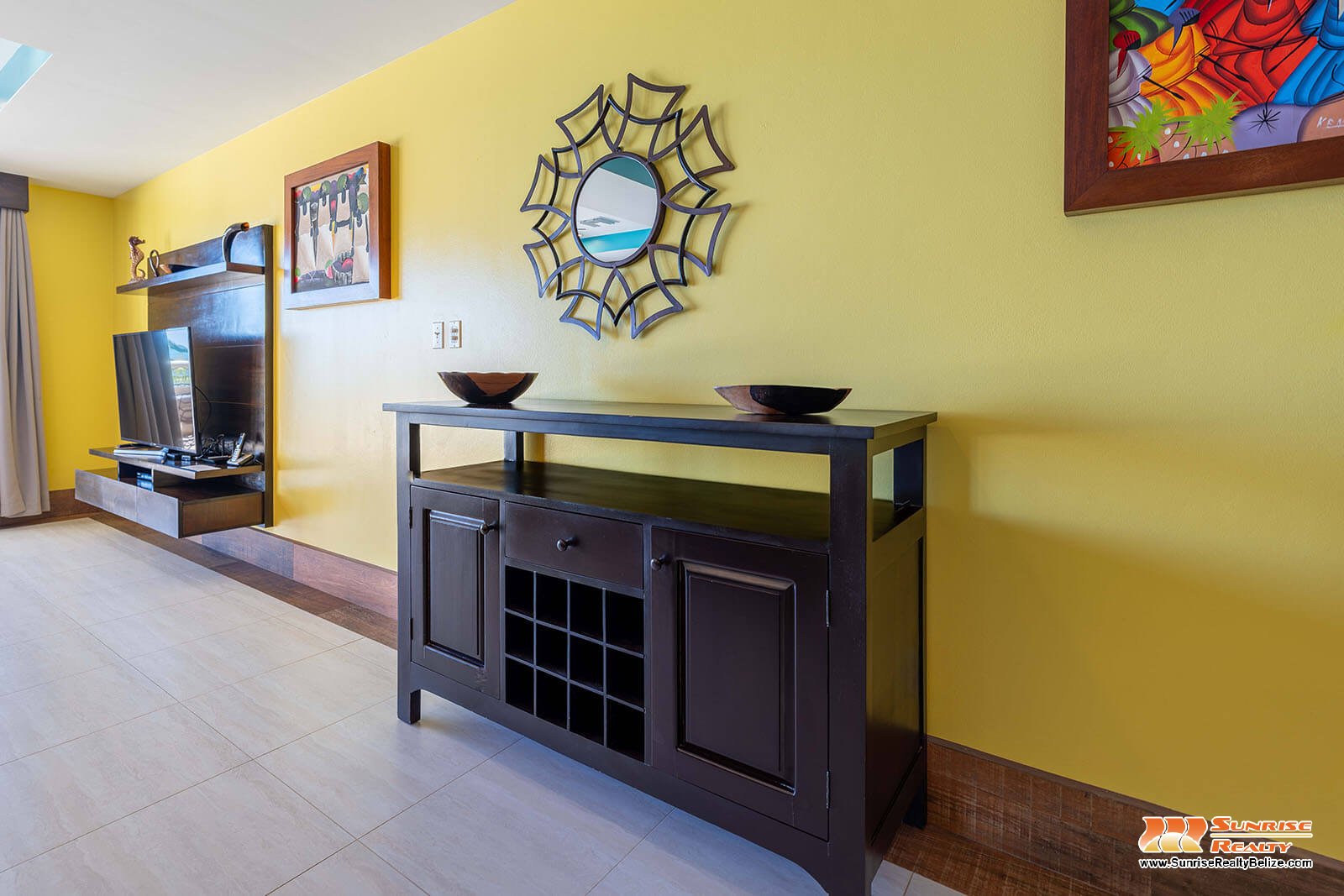 This two bedroom condo has a spacious open plan living area with a high end kitchen, dining area and living room that walks out to an oversized private balcony with glass rails to allow unobstructed views of the Caribbean Sea and the Barrier Reef. Offering 2,146 sq ft of living space, this condo has plenty of space for entertaining, relaxing and enjoying your island life. High end finishes include an open kitchen with expertly crafted mahogany cabinets, luxurious granite countertops and deluxe stainless steel appliances. Superb craftsmanship continues throughout the condo with hardwood built-in storage in the bedrooms and bathrooms and flawless tile work on the floors and showers. This condo is being sold fully furnished and rental ready.
