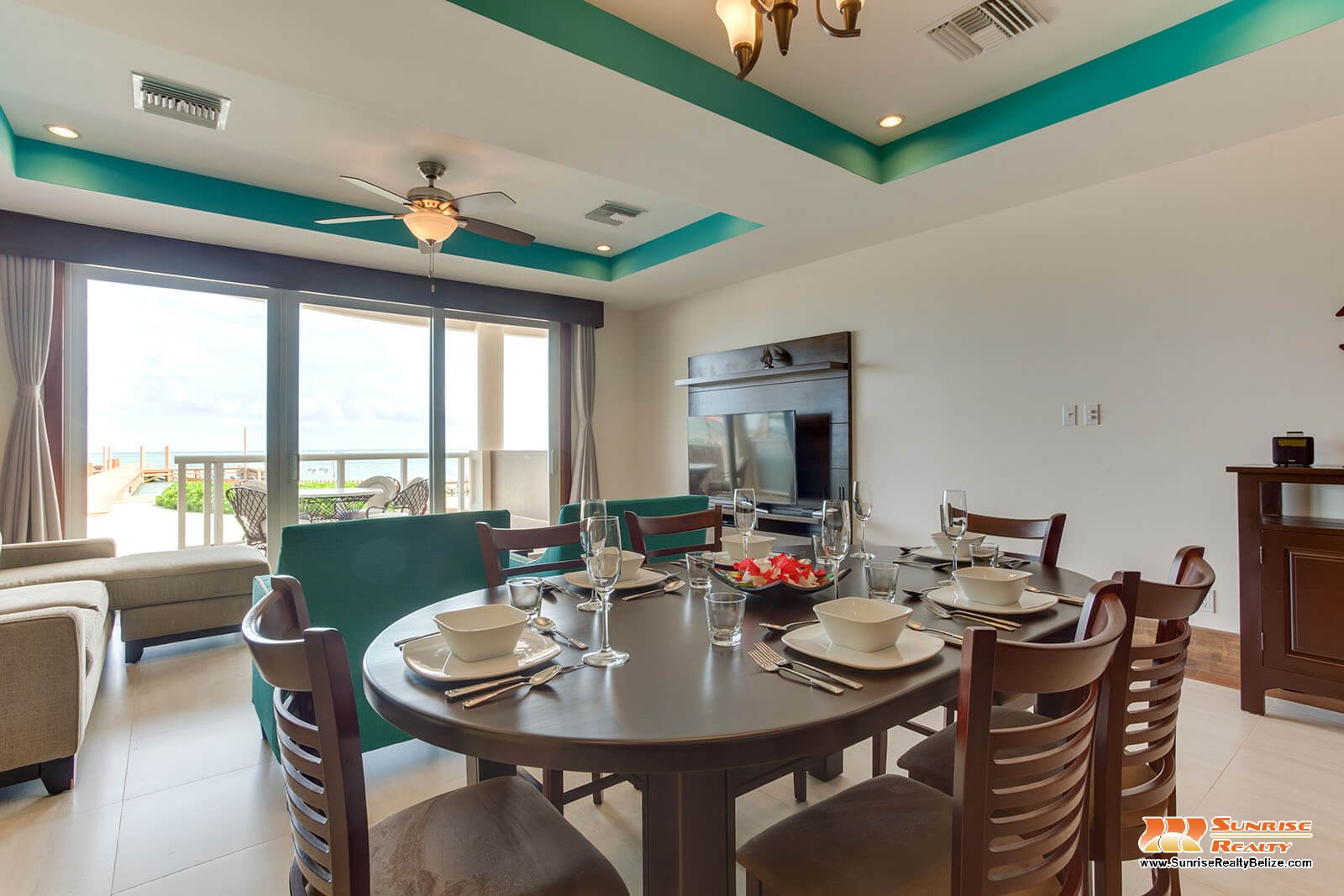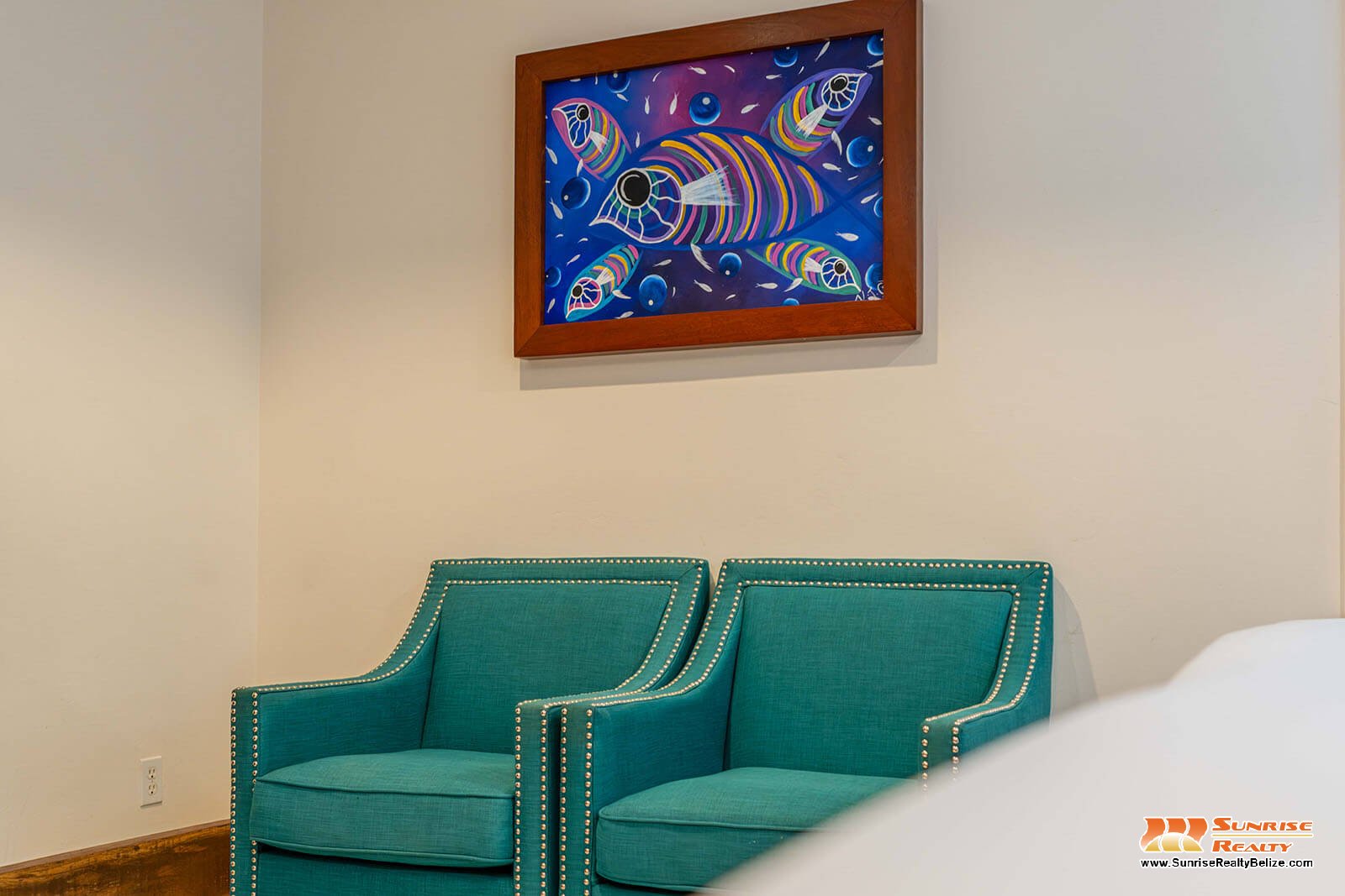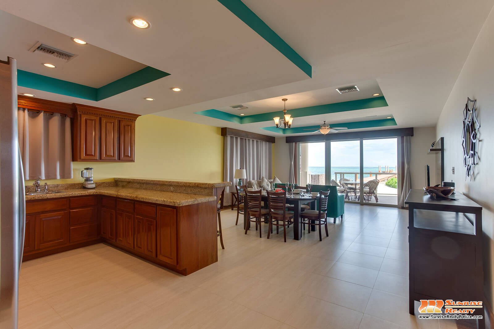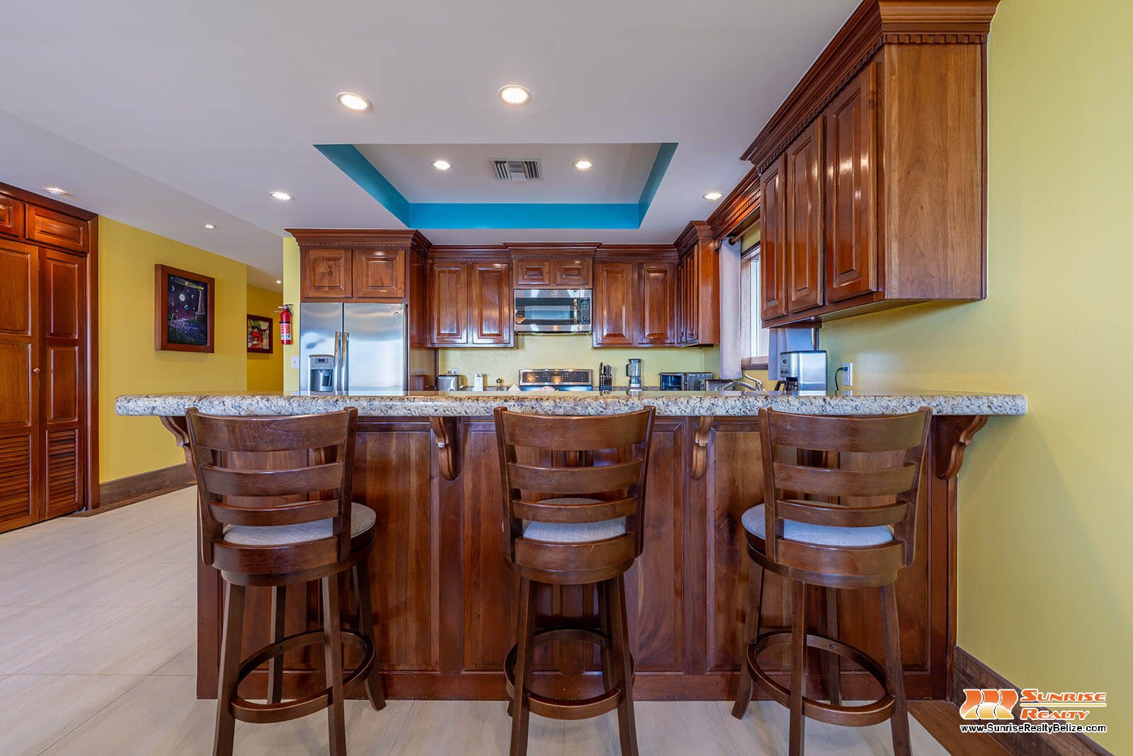 This two bedroom condo has a spacious open plan living area with a high end kitchen, dining area and living room that walks out to an oversized private balcony with glass rails to allow unobstructed views of the Caribbean Sea and the Barrier Reef. Offering 2,146 sq ft of living space, this condo has plenty of space for entertaining, relaxing and enjoying your island life. High end finishes include an open kitchen with expertly crafted mahogany cabinets, luxurious granite countertops and deluxe stainless steel appliances. Superb craftsmanship continues throughout the condo with hardwood built-in storage in the bedrooms and bathrooms and flawless tile work on the floors and showers. This condo is being sold fully furnished and rental ready.