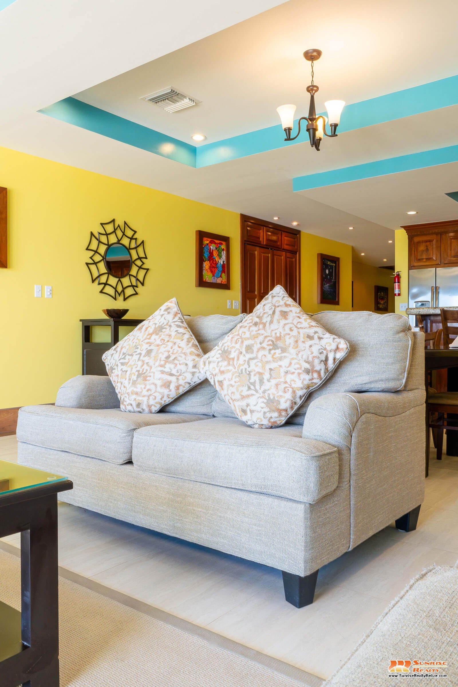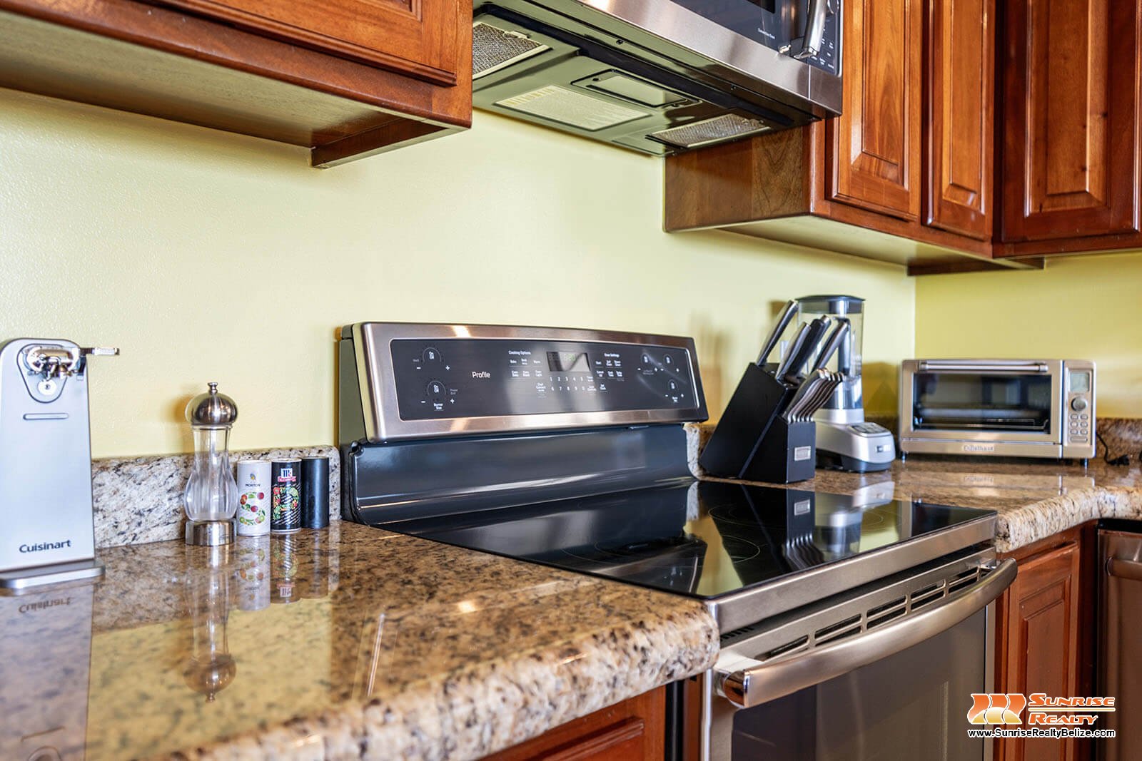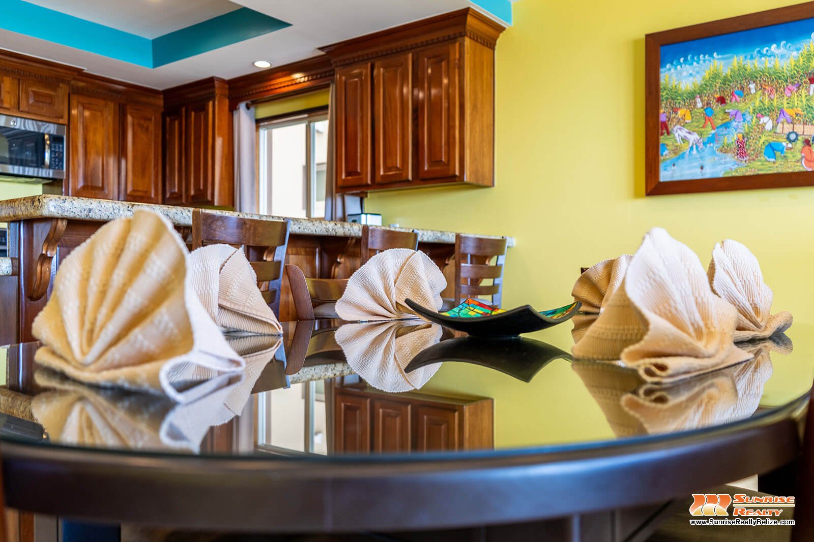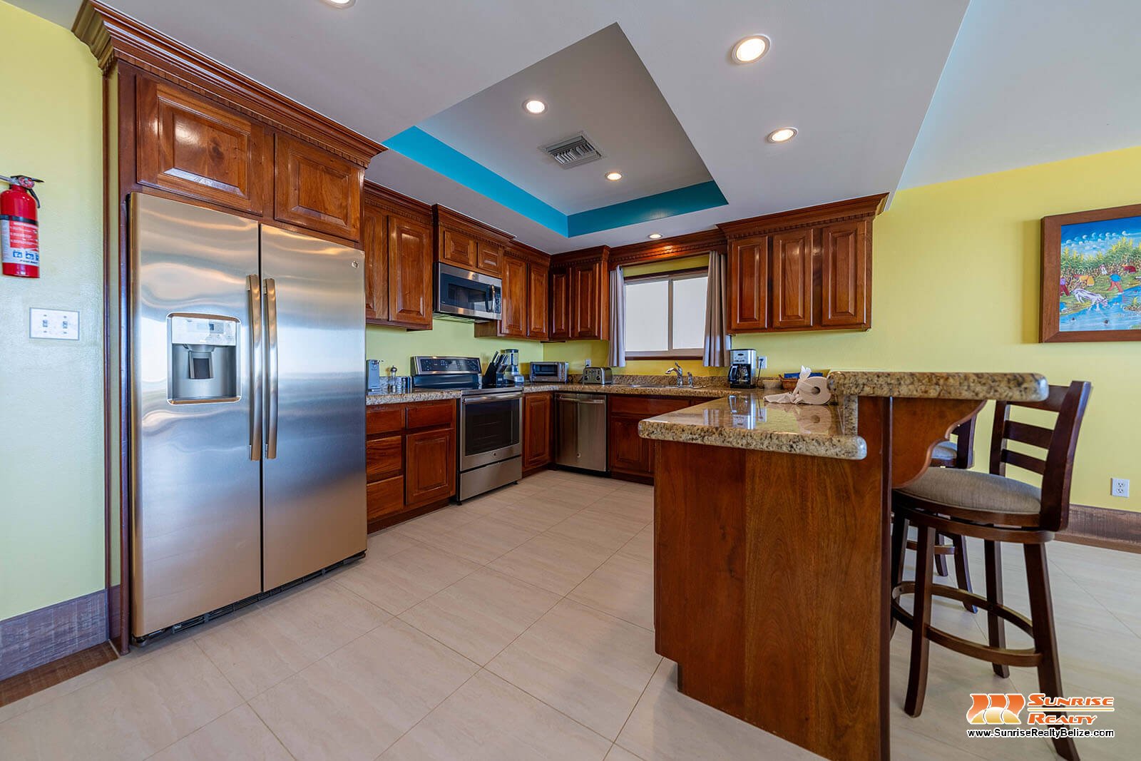 This two bedroom condo has a spacious open plan living area with a high end kitchen, dining area and living room that walks out to an oversized private balcony with glass rails to allow unobstructed views of the Caribbean Sea and the Barrier Reef. Offering 2,146 sq ft of living space, this condo has plenty of space for entertaining, relaxing and enjoying your island life. High end finishes include an open kitchen with expertly crafted mahogany cabinets, luxurious granite countertops and deluxe stainless steel appliances. Superb craftsmanship continues throughout the condo with hardwood built-in storage in the bedrooms and bathrooms and flawless tile work on the floors and showers. This condo is being sold fully furnished and rental ready.