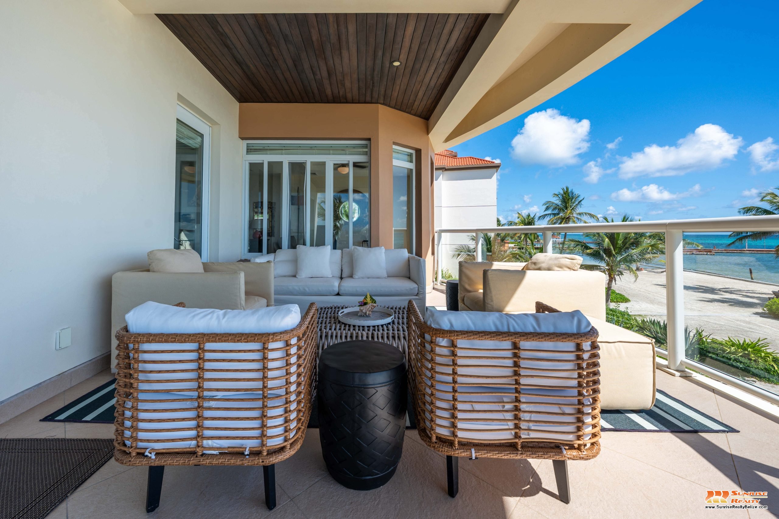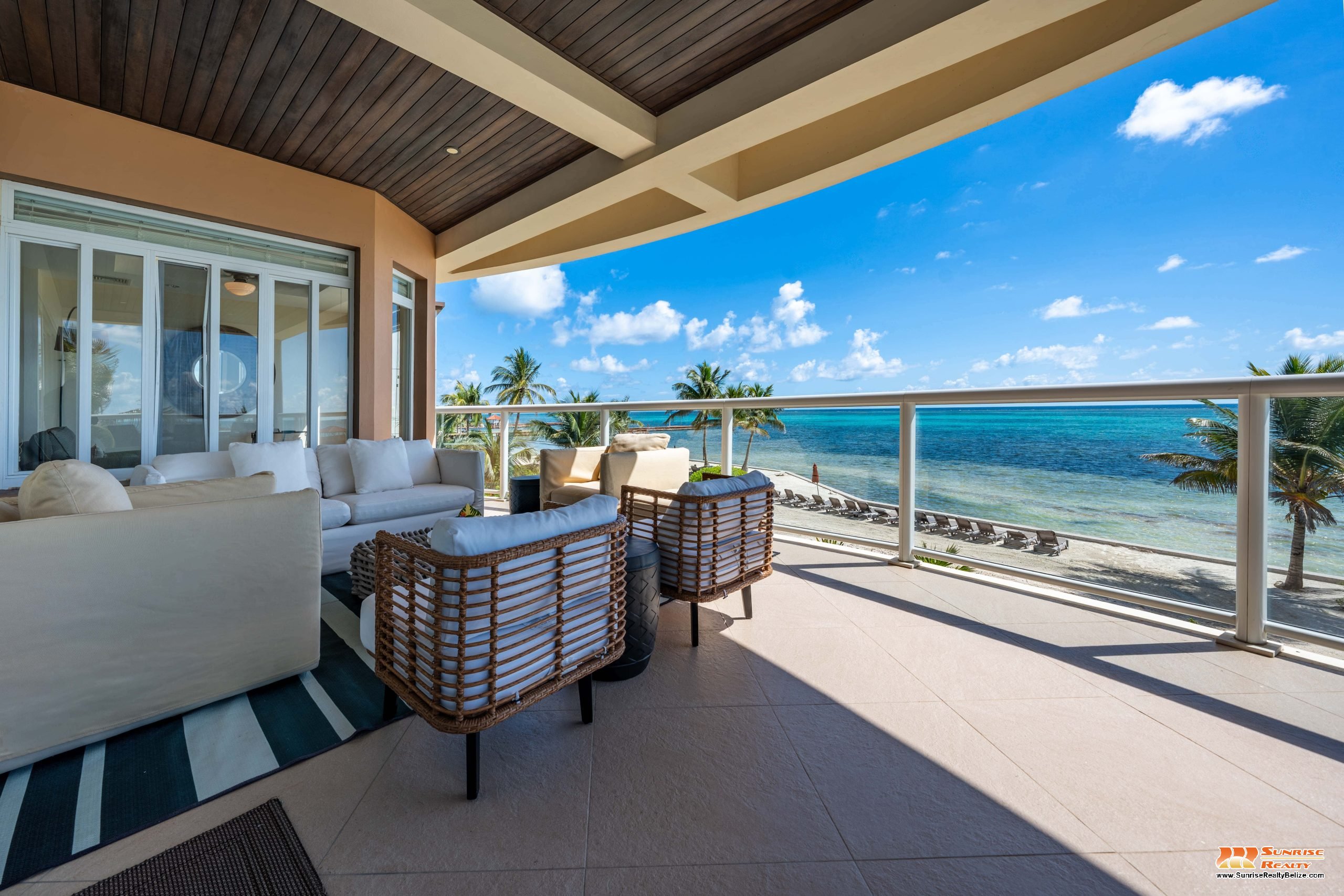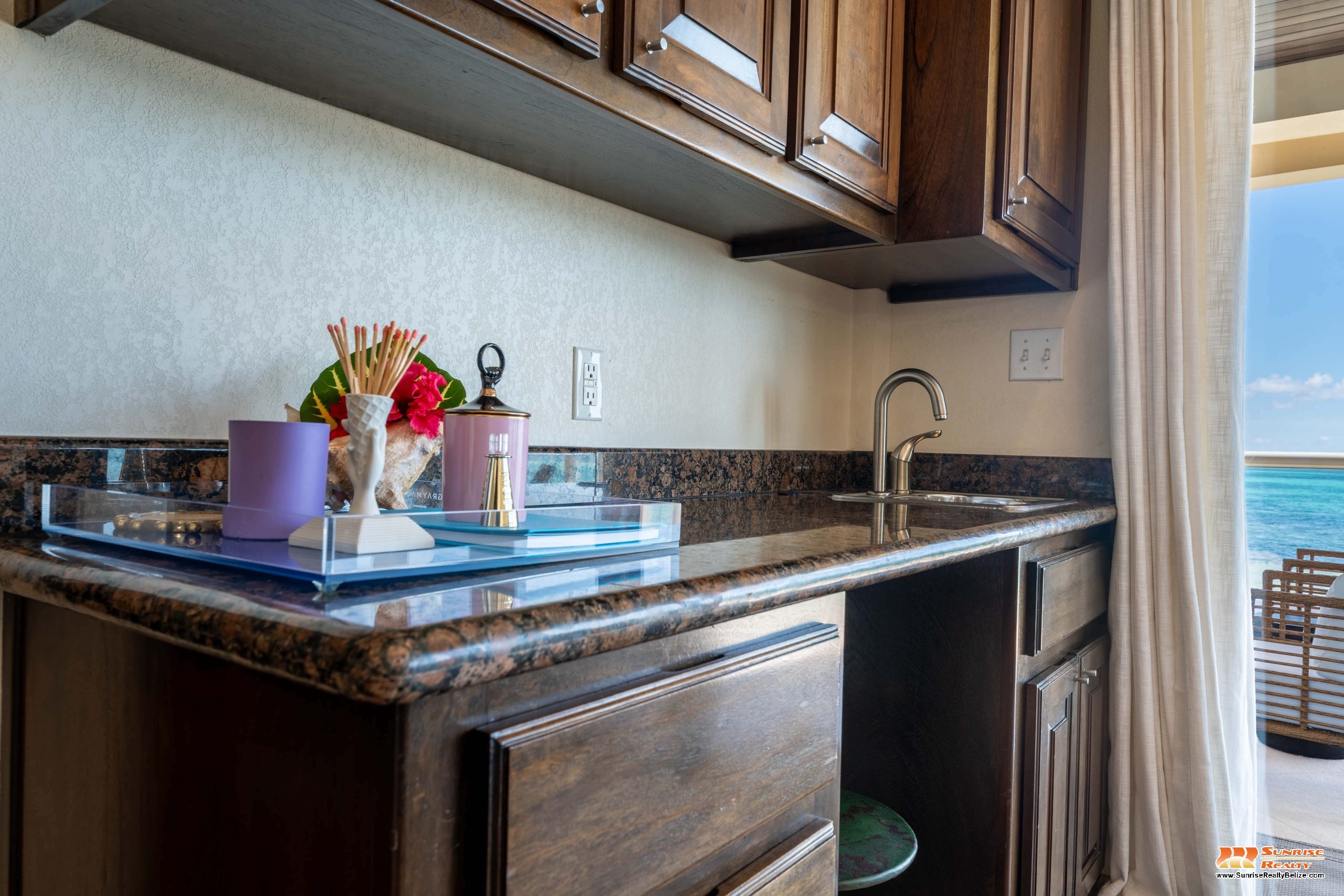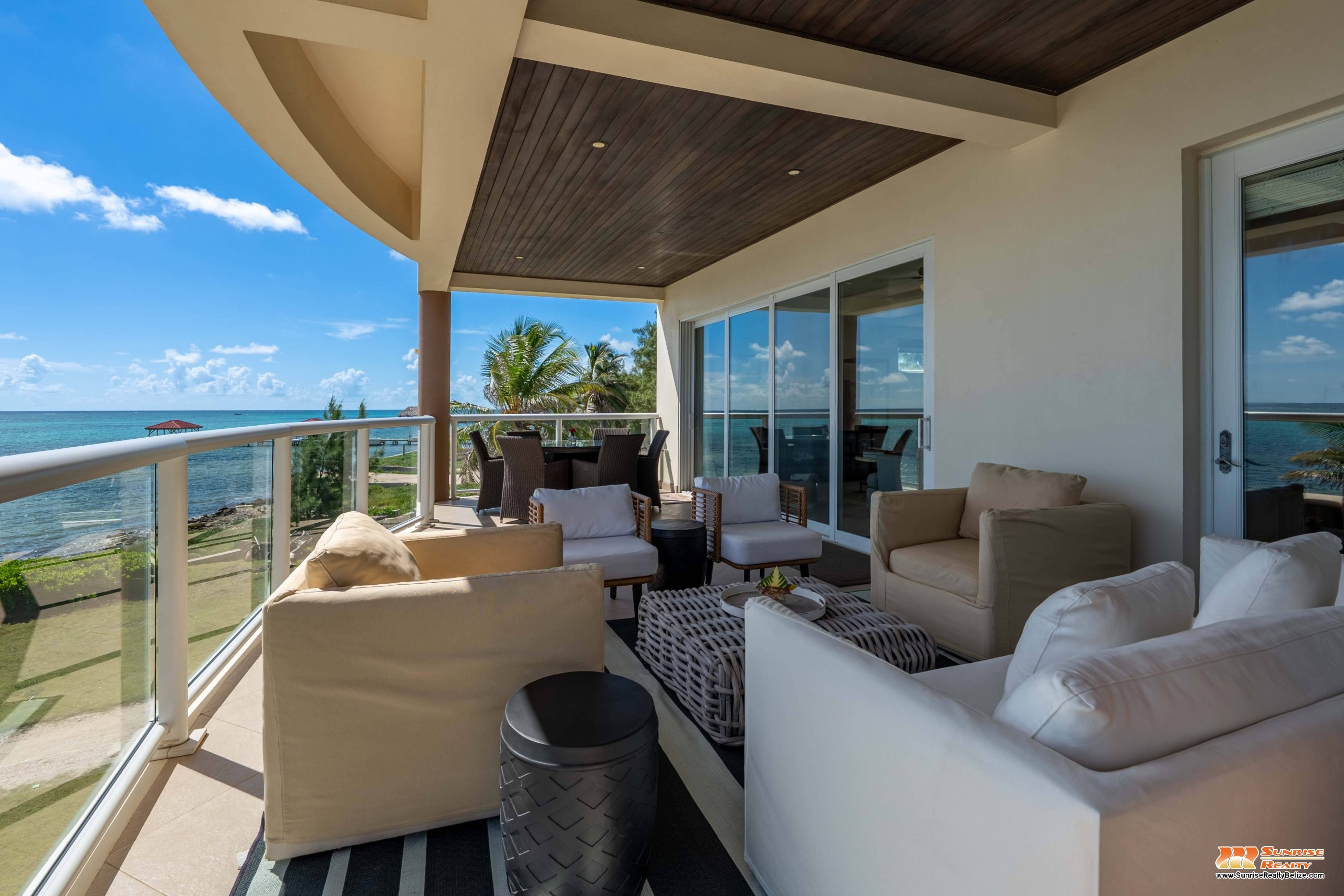 This income generating three bedroom, three bathroom condo features absolutely stunning views of the Caribbean Sea and the world’s second largest Barrier Reef. Expansive floor-to-ceiling glass doors open the living area to the spacious private balcony for seamless indoor/outdoor flow. The condo is beautifully designed and tastefully furnished. The kitchen features gorgeous Belizean hardwood cabinetry, granite countertops and stainless steel appliances. The open plan living area ensures stunning views of the sea whether you are relaxing in the living room or verandah, cooking or enjoying dinner.