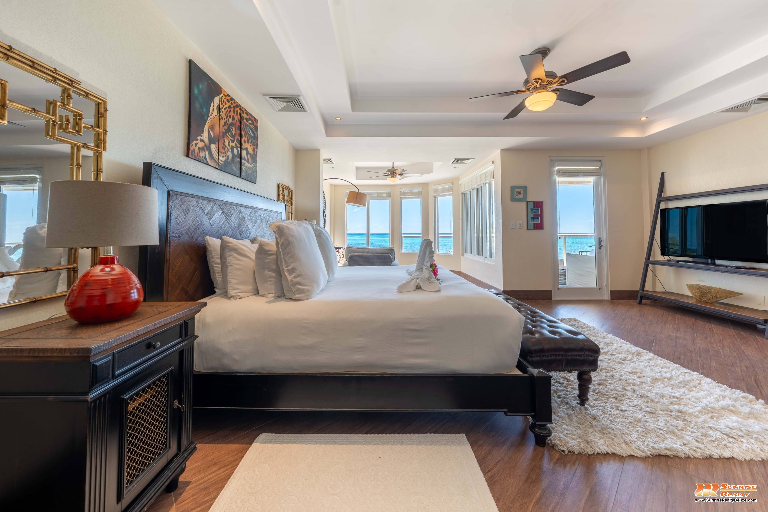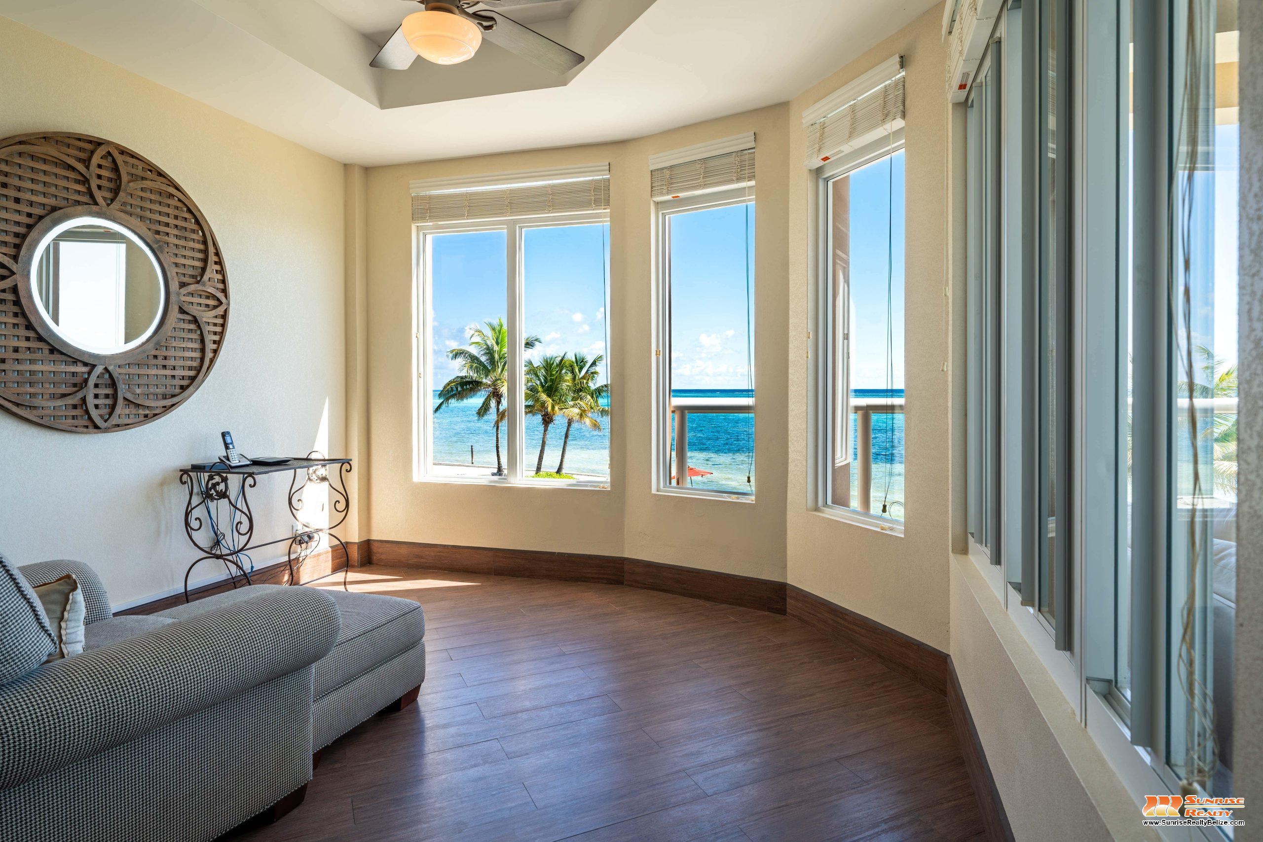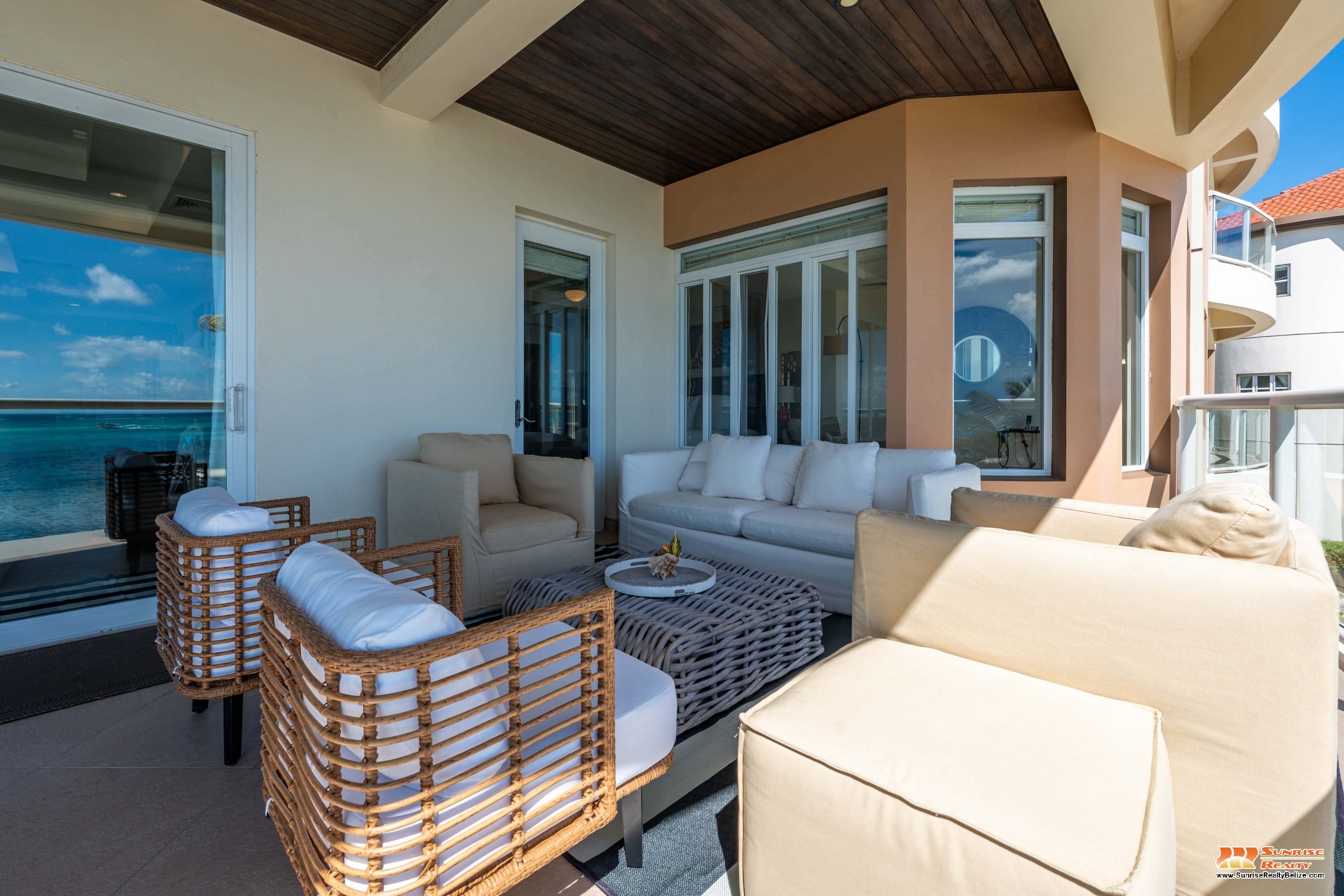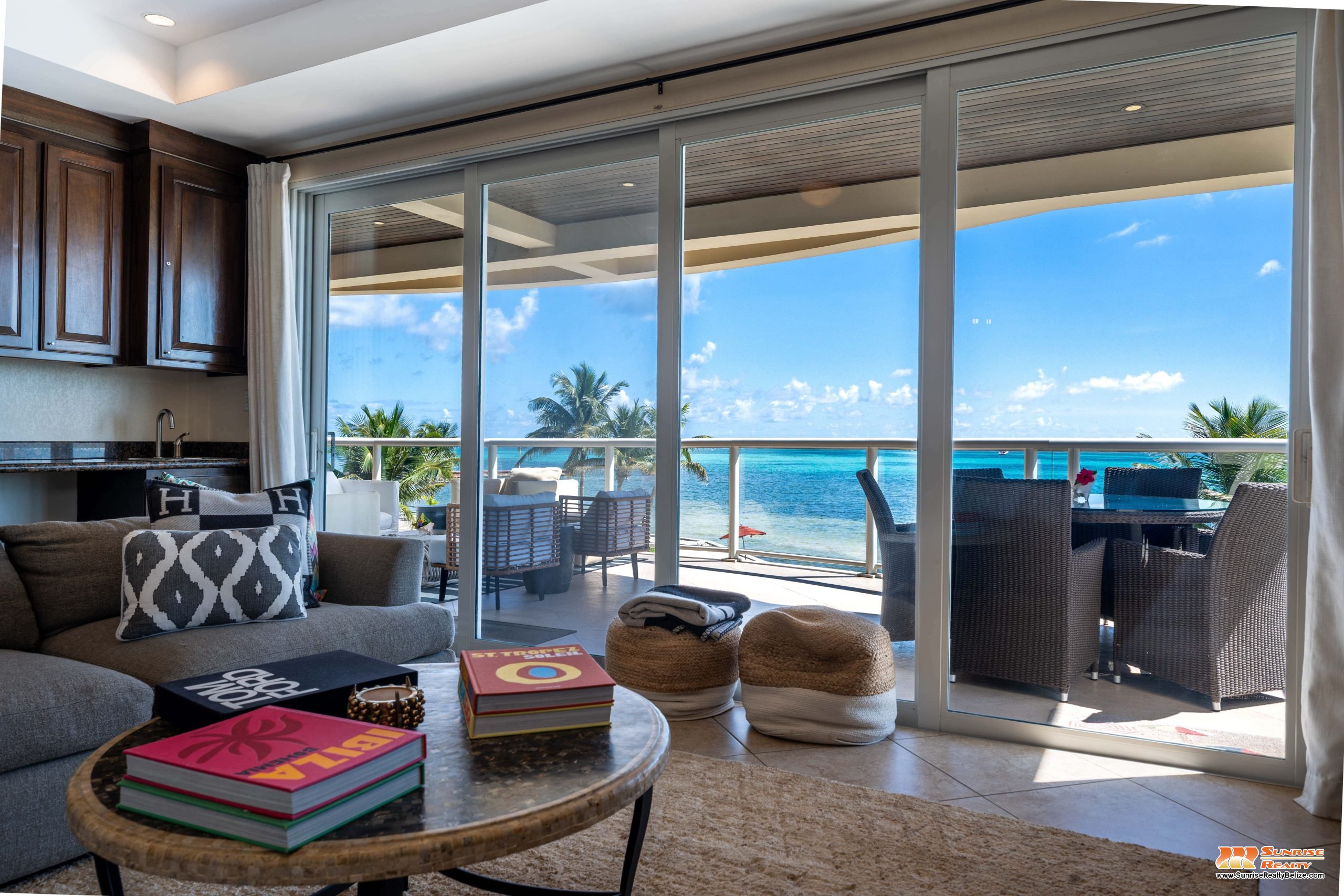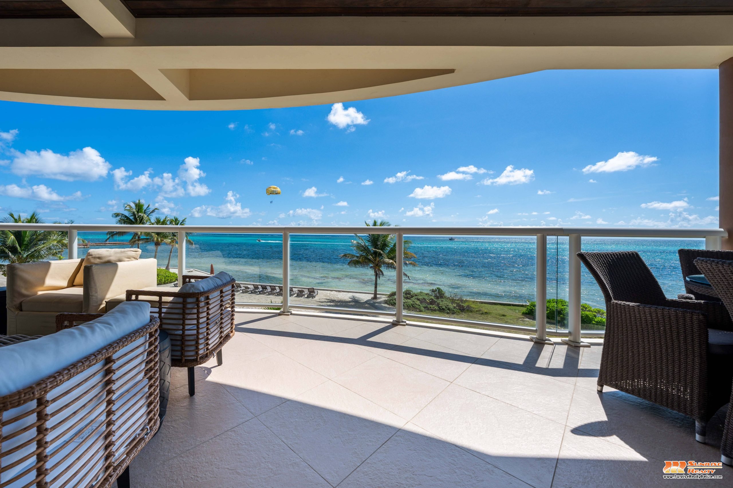 This income generating three bedroom, three bathroom condo features absolutely stunning views of the Caribbean Sea and the world’s second largest Barrier Reef. Expansive floor-to-ceiling glass doors open the living area to the spacious private balcony for seamless indoor/outdoor flow. The condo is beautifully designed and tastefully furnished. The kitchen features gorgeous Belizean hardwood cabinetry, granite countertops and stainless steel appliances. The open plan living area ensures stunning views of the sea whether you are relaxing in the living room or verandah, cooking or enjoying dinner.