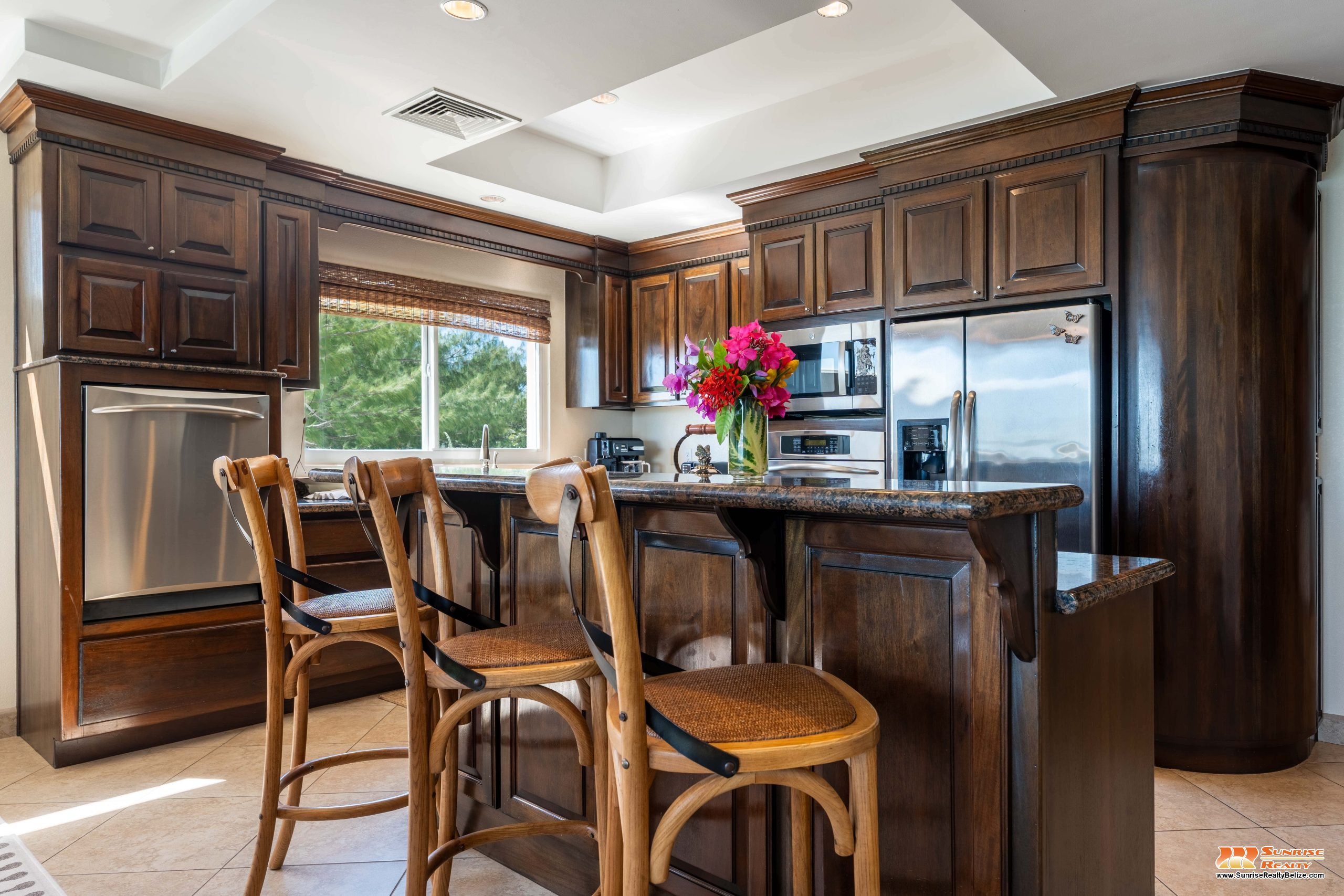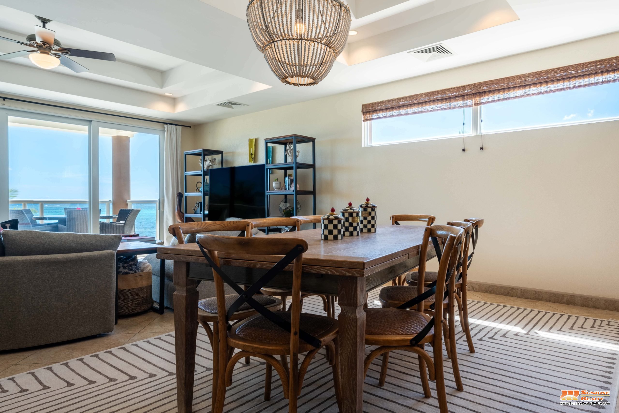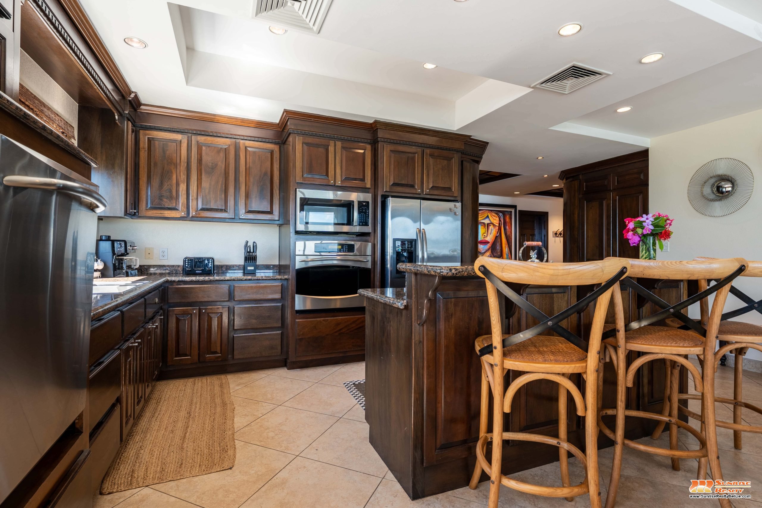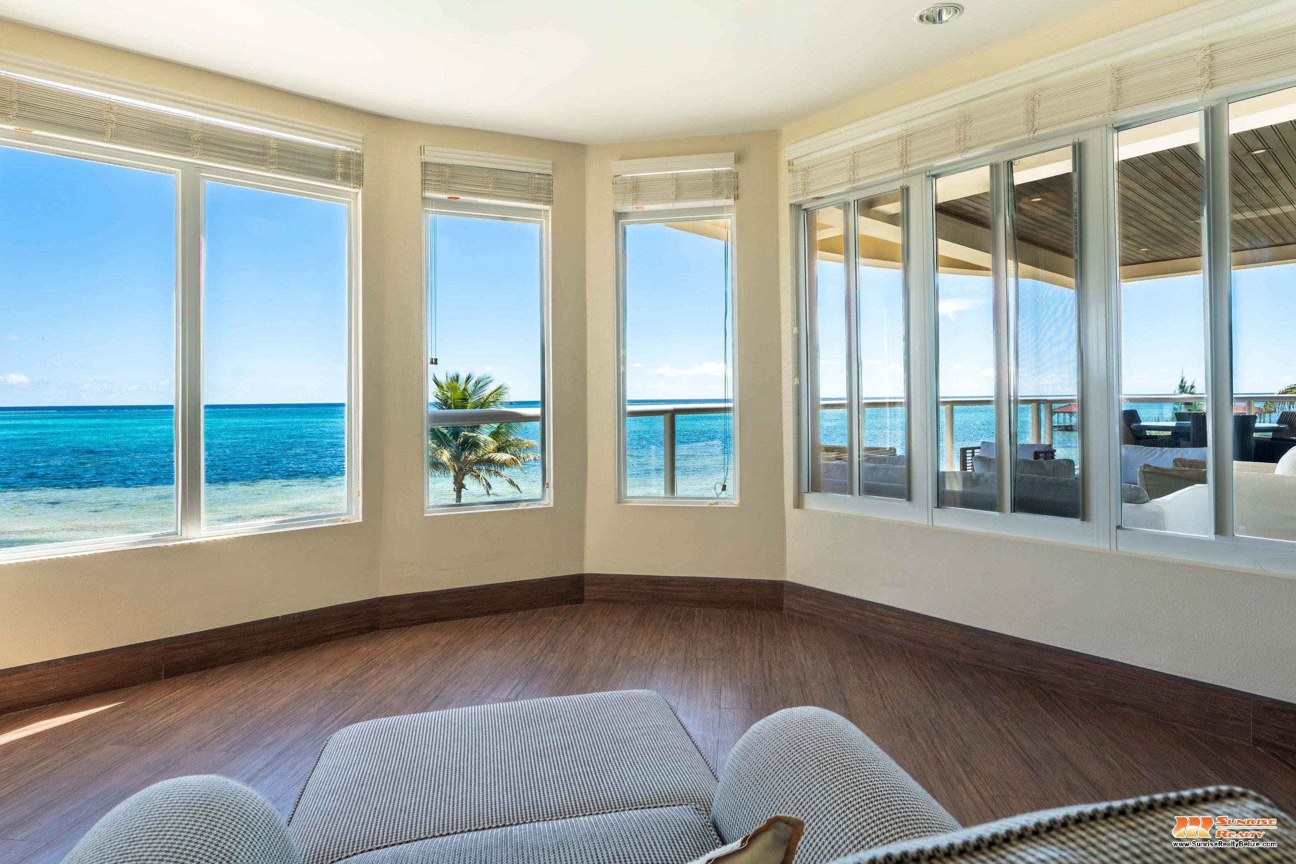 This income generating three bedroom, three bathroom condo features absolutely stunning views of the Caribbean Sea and the world’s second largest Barrier Reef. Expansive floor-to-ceiling glass doors open the living area to the spacious private balcony for seamless indoor/outdoor flow. The condo is beautifully designed and tastefully furnished. The kitchen features gorgeous Belizean hardwood cabinetry, granite countertops and stainless steel appliances. The open plan living area ensures stunning views of the sea whether you are relaxing in the living room or verandah, cooking or enjoying dinner.