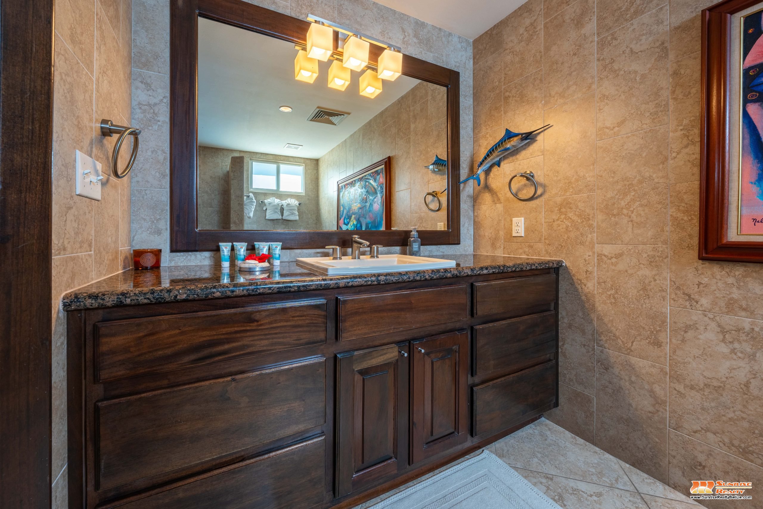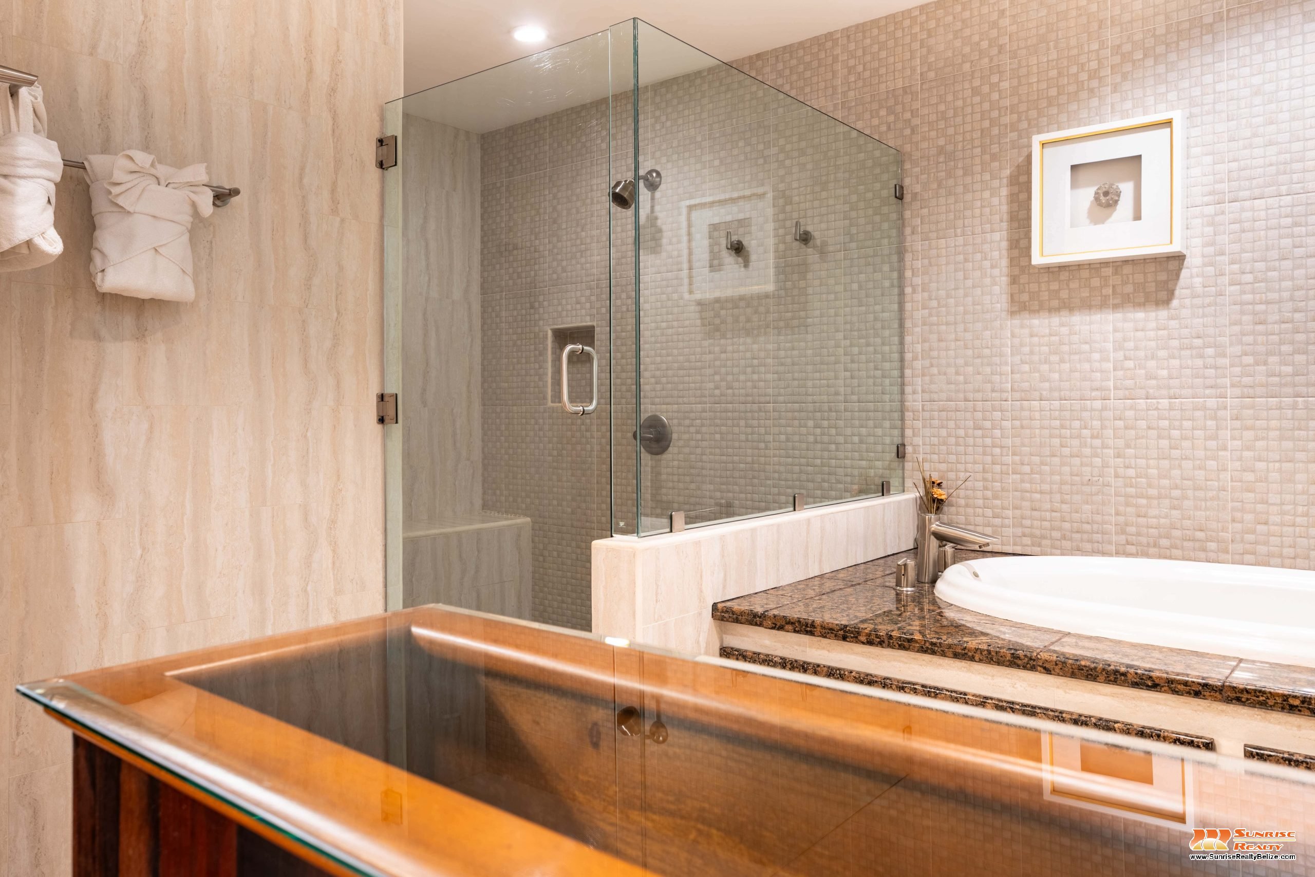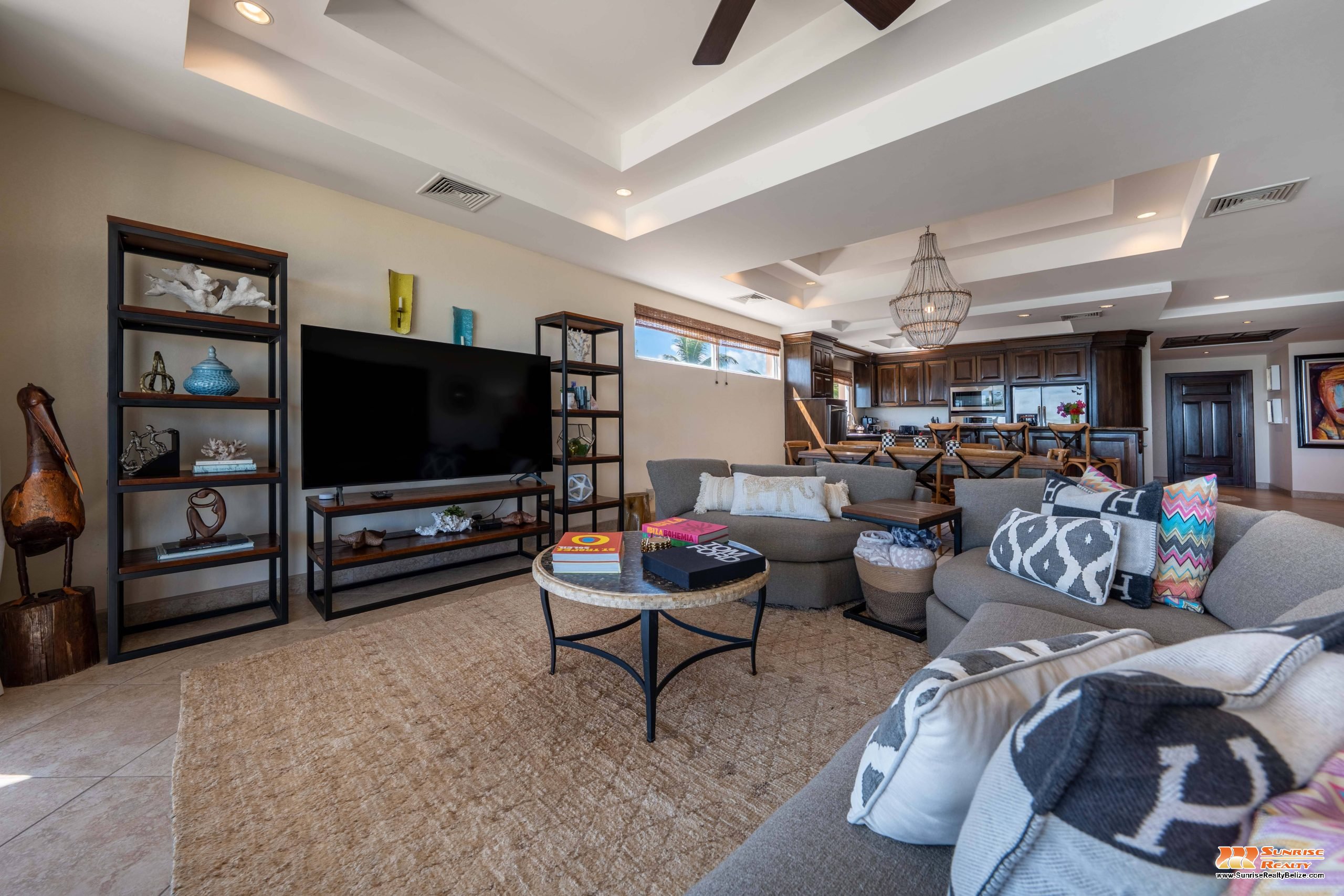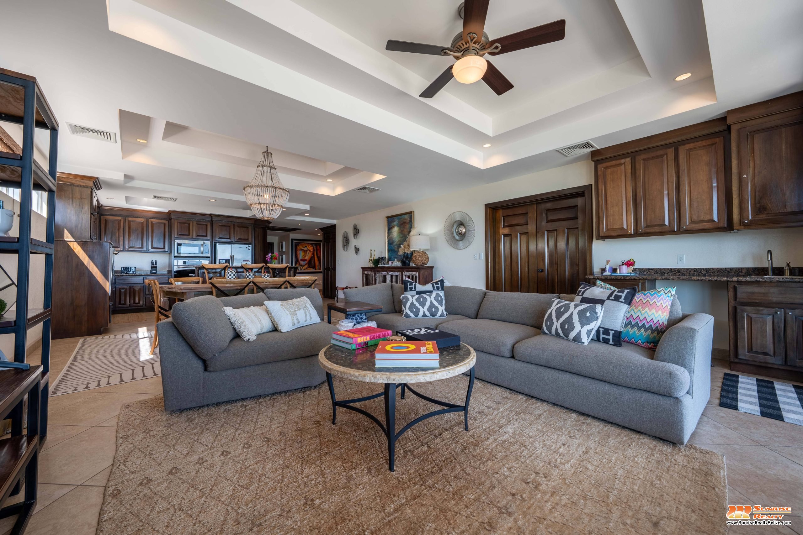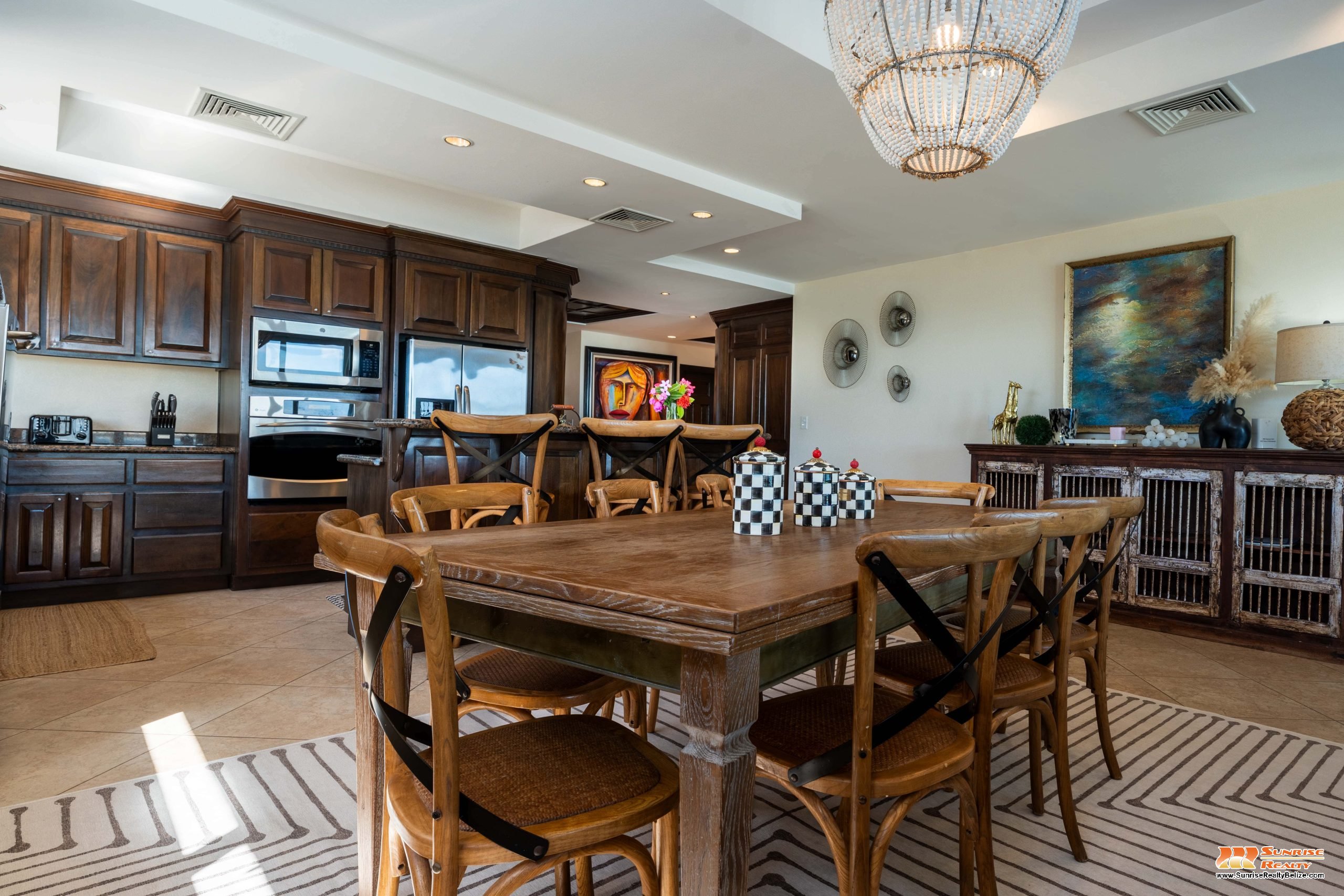 This income generating three bedroom, three bathroom condo features absolutely stunning views of the Caribbean Sea and the world’s second largest Barrier Reef. Expansive floor-to-ceiling glass doors open the living area to the spacious private balcony for seamless indoor/outdoor flow. The condo is beautifully designed and tastefully furnished. The kitchen features gorgeous Belizean hardwood cabinetry, granite countertops and stainless steel appliances. The open plan living area ensures stunning views of the sea whether you are relaxing in the living room or verandah, cooking or enjoying dinner.